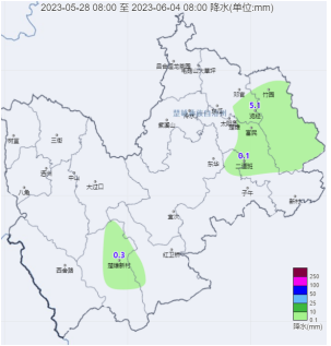 本周受副热带高压控制,从28日开始,气温持续升高,大部分乡镇日最高气温均维持在30度以上,6月1日市区(大监站)最高气温达35.1℃,创历史新高,低热河谷大地基乡红卫桥达42.0℃,为建站以来最高,我市遭受持续性高温天气,气象干旱和森林火险形势严峻。