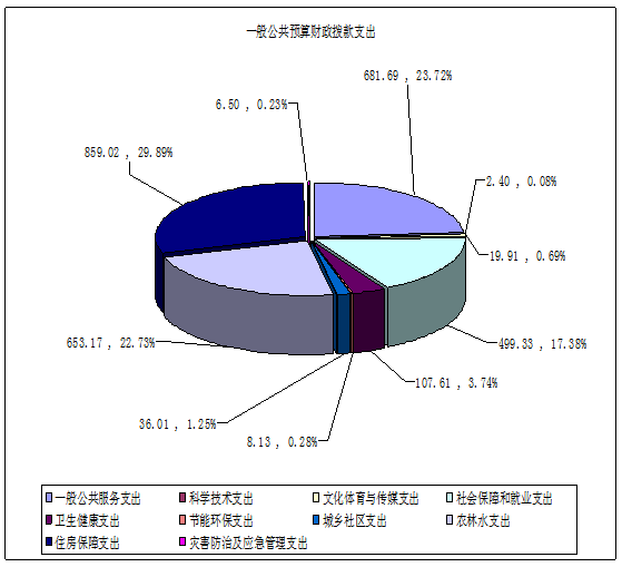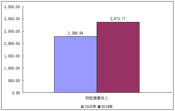 新村镇2019年度一般公共预算财政拨款支出2873.77万元,占本年支出合计的100%。与上年对比,2018年度2289.59万元,同比增加25.51%;增加主要原因是2019年度危房改造补助项目资金增加,各类扶贫项目资金增加,一般公共预算财政拨款支出。