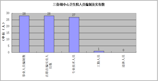 楚雄市三街镇中心卫生院部门2019年末实有人员编制28人。其中:行政编制0人(含行政工勤编制0人),事业编制28人(含参公管理事业编制0人);在职在编实有行政人员0人(含行政工勤人员0人),事业人员28人(含参公管理事业人员0人),其他人员0人。
