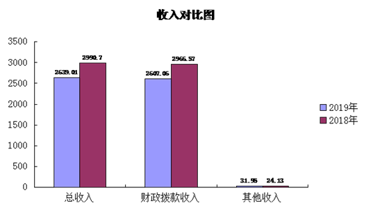 楚雄市卫生健康局部门2019年度收入合计2,639.01万元。其中:财政拨款收入2,607.06万元,占总收入的98.79%;上级补助收入0万元,占总收入的0%;事业收入0万元,占总收入的0%;经营收入0万元,占总收入的0%;附属单位缴款收入0万元,占总收入的0%;其他收入31.95万元,占总收入的1.21%。与上年度对比收入合计比减少351.69万元,下降比例为11.76%,其中财政拨款收入减少359.51万元,下降比例为12.12%;其他收入增加7.82万元,增长比例32.4%。与上年相比收入减少的主要原因为重大公共卫生服务项目资金拨款比2018年减少,2019年无青春健康教育项目资金和医疗卫生服务体系规划编制经费。
