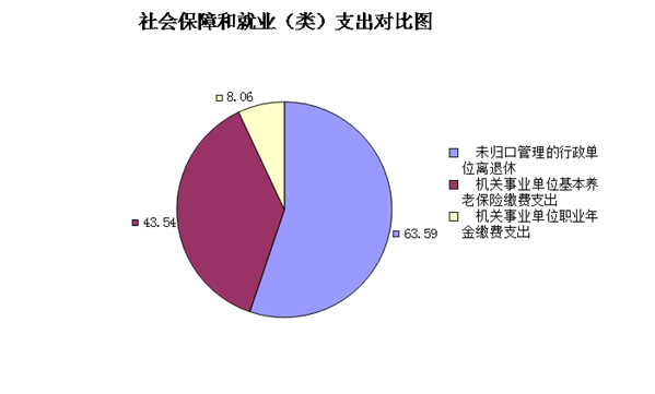 8.社会保障和就业(类)支出115.19万元,占一般公共预算财政拨款总支出的4.33%。其中未归口管理的行政单位离退休支出63.59万元。占社会保障和就业(类)支出的55.2%;机关事业单位基本养老保险缴费支出43.54万元,占社会保障和就业(类)支出的37.79%;机关事业单位职业年金缴费支出8.06占社会保障和就业(类)支出的7.01%。