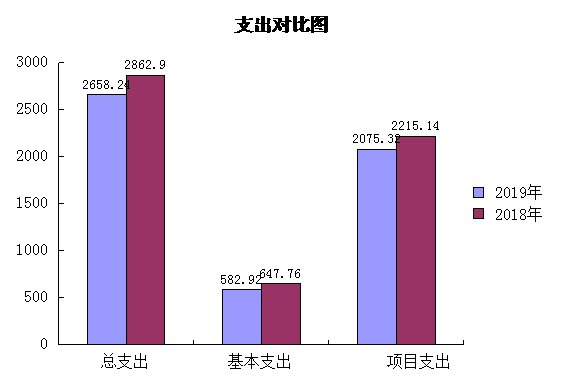 楚雄市卫生健康局部门2019年度一般公共预算财政拨款支出2,658.24万元,占本年支出合计的100%。与上年对比与上年对比总支出减少204.66万元,降低比例为7.14%,与上年相比收入减少的主要原因为重大公共卫生服务项目资金拨款比2018年减少,2019年无青春健康教育项目资金和医疗卫生服务体系规划编制经费。