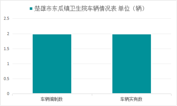 楚雄市东瓜卫生院实有车辆编制2辆,在编实有车辆2辆。