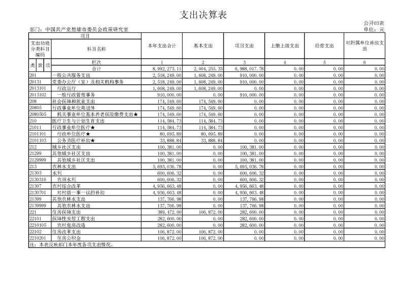三、支出决算表