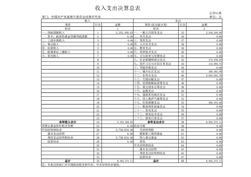 一、收入支出决算总表
