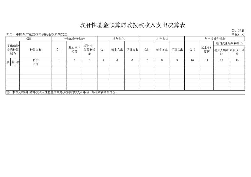 七、政府性基金预算财政拨款收入支出决算表