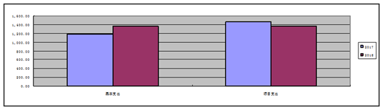 2018年度用于保障大过口乡人民政府机关、下属事业单位等机构正常运转的基本支出1,359.23万元,与上年对比增加了176.32万元。包括基本工资、津贴补贴等人员经费支出占基本支出的91.32%;办公费、印刷费、水电费、办公设备购置等日常公用经费占基本支出的8.68%。