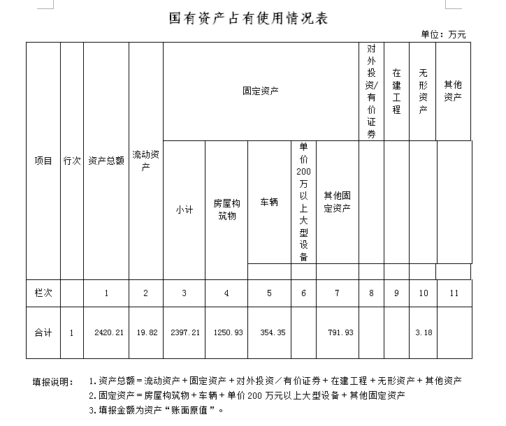 截至2021年12月31日,楚雄市市场监督管理局资产总额2,420.21万元,其中,流动资产19.82万元,固定资产2,397.21万元,对外投资及有价证券0万元,在建工程0万元,无形资产3.18万元,其他资产0万元(具体内容详见附表)。与上年相比,本年资产总额增加49.83万元,其中:固定资产增加37.39万元。处置房屋建筑物0平方米,账面原值0万元;处置车辆0辆,账面原值0万元;报废报损资产0项,账面原值0万元,实现资产处置收入0万元;出租房屋0平方米,账面原值0万元,实现资产使用收入0万元。