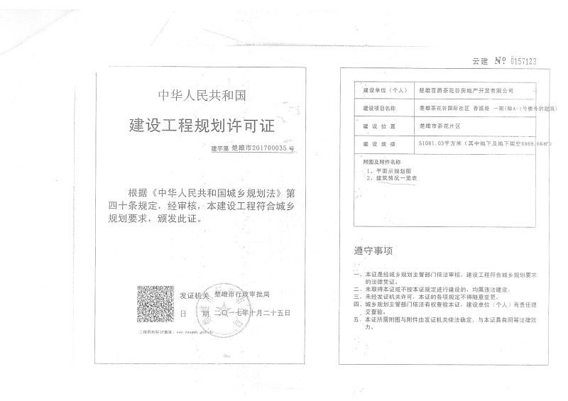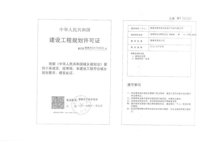 申请人: 楚雄百爵茶花谷房地产开发有限公司