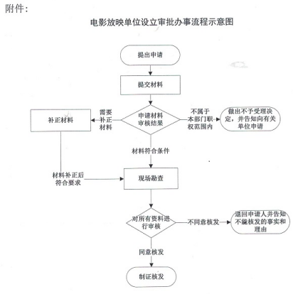 详见附件:电影放映单位设立审批办事流程示意图