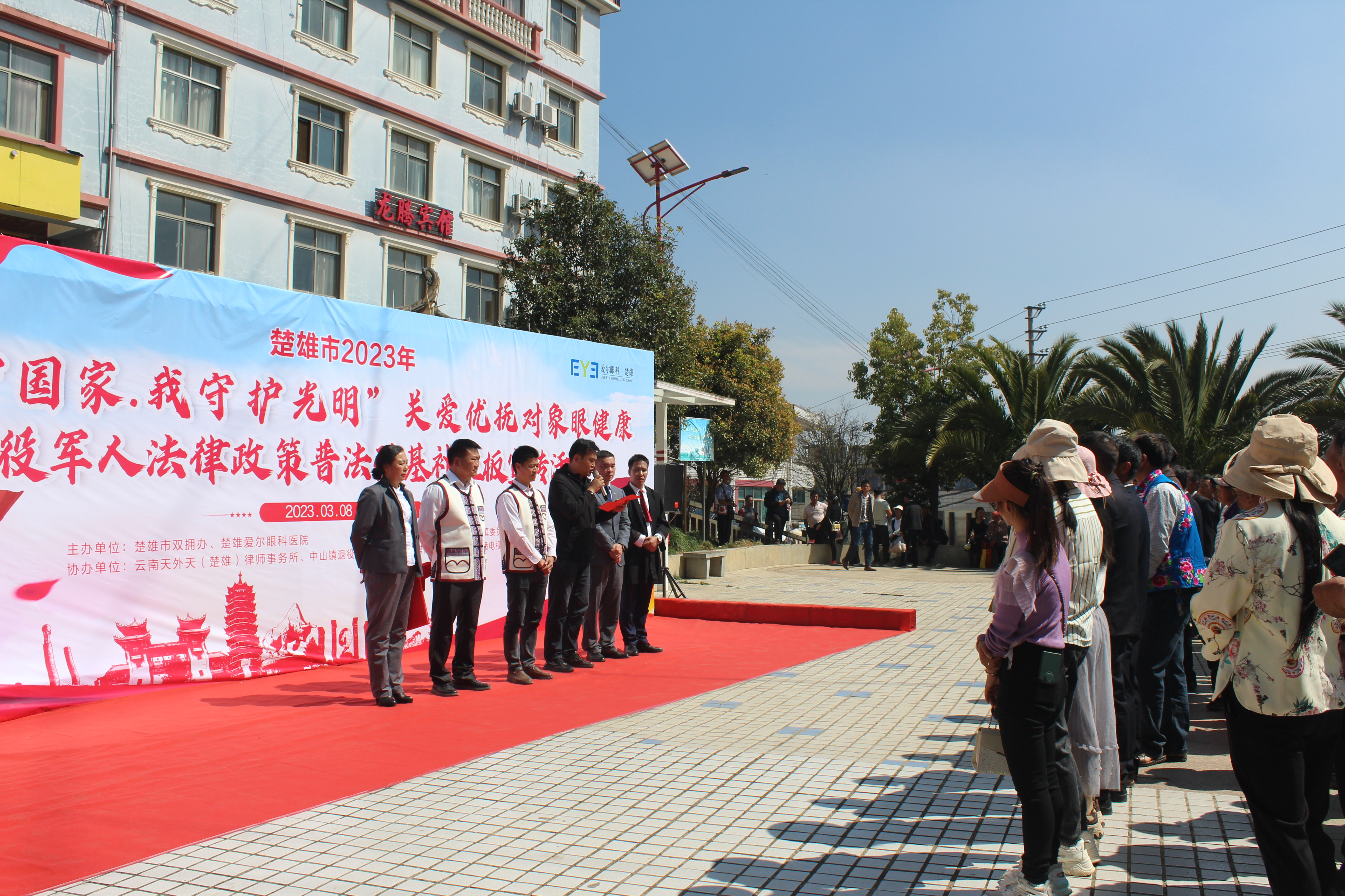 近日楚雄市退役军人事务局为有力推进普法强基补短板专项行动工作,联合爱尔眼科医院、天外天律师事务所等社会双拥企业深入乡村开展“你守护国家,我守护光明”关爱优抚对象眼健康暨退役军人普法强基补短板宣传活动,活动现场律师们针对群众的咨询法律问题,耐心与群众交流、疏导,提供各种合理化建议,并引导符合条件的群众申请法律援助。同时局相关科室人员下沉到村委会(社区)进行退役军人法律政策的宣讲。