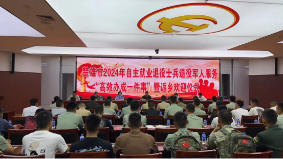 近日,楚雄市举行2024年9月自主就业退役士兵退役军人服务“高效办成一件事”集中报到暨返乡欢迎仪式,为56名自主就业退役士兵提供一站式服务,让他们真切感受到尊崇尊重。欢迎仪式上,退役军人事务局就退役报到、就业创业政策、保密工作、安全工作等进行了专题宣讲,积极引导退役士兵主动学习相关政策法规和业务知识,提升自身素质,上好退役融入社会的“第一课”。