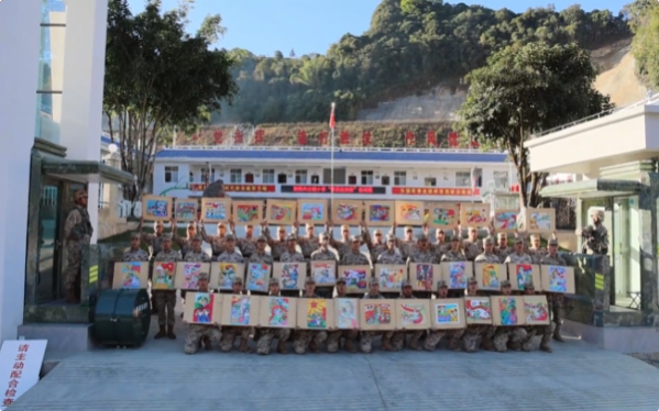 跨越千里的祝福画卷承载着一份份祝福跨越千山万水直抵练兵一线温暖了每一位边防官兵的心。