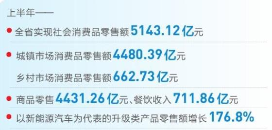 近日,省统计局发布数据显示:上半年全省实现社会消费品零售额5143.12亿元,同比增长17.4%,两年平均增长3.6%,两年平均增速较一季度加快0.4个百分点;其中二季度同比增长11.3%,两年平均增长3.9%。