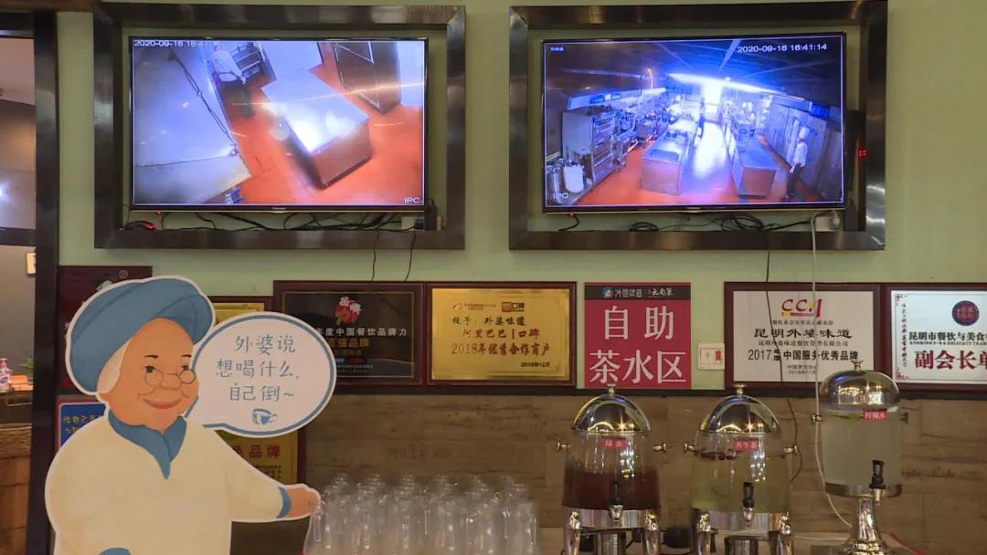 外婆味道兆顺店店长 秦华:就餐环境,我们外婆味道提倡的是环境优美、干净卫生。在我们客人进店的过程中,我们在门口设立了流动洗手台,供客人提前洗手;在厨房的板块,我们严格按照管理要求规范管理,同时在我们的大厅明厨亮灶板块,设置了可观控的影像投放,让客人能够随时监管观看,让客人看到我们整个的厨房的制作过程,让客人看得放心,吃得更放心;环境卫生我们的内部的话也是一样的,按照我们的管理规范,以打造环境第一、环境舒适的理念,来把我们的整个厅面卫生做到规范管理。