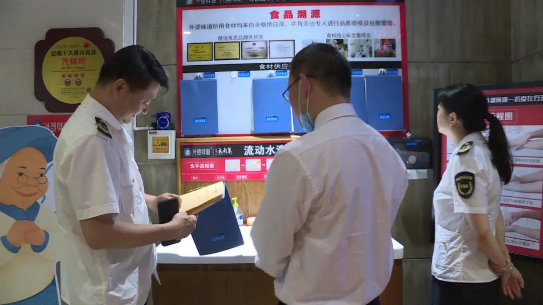 楚雄市市场监督管理局食品安全监管科科长 文远东:根据省、州、市净餐馆专项行动的相关要求,楚雄市市场监督管理局对全市5000多家餐饮服务单位进行了规范,结合创文创卫,近期主要开展了以下工作,一是证照等信息公示上墙,二是三防设施安装并使用,三是从业人员持有效健康证上岗,四是经营环境干净整洁。目前该项工作有序开展,希望广大市民共同关注参与本次专项行动。下步,楚雄市市场监督管理局将继续加强对餐饮服务单位硬件设施设备的提升改造,按照“净餐馆”的标准,分步抓好落实,更好地保障全市人民舌尖上的安全。