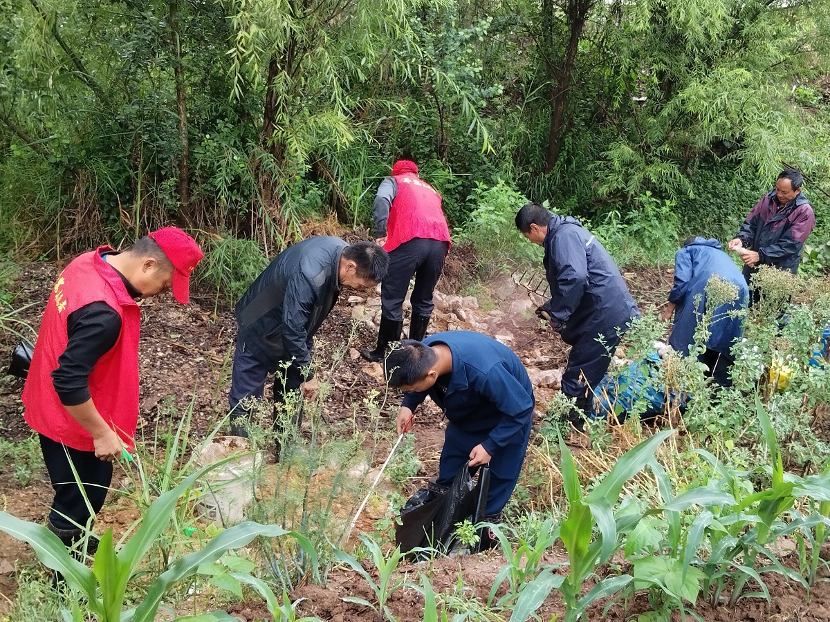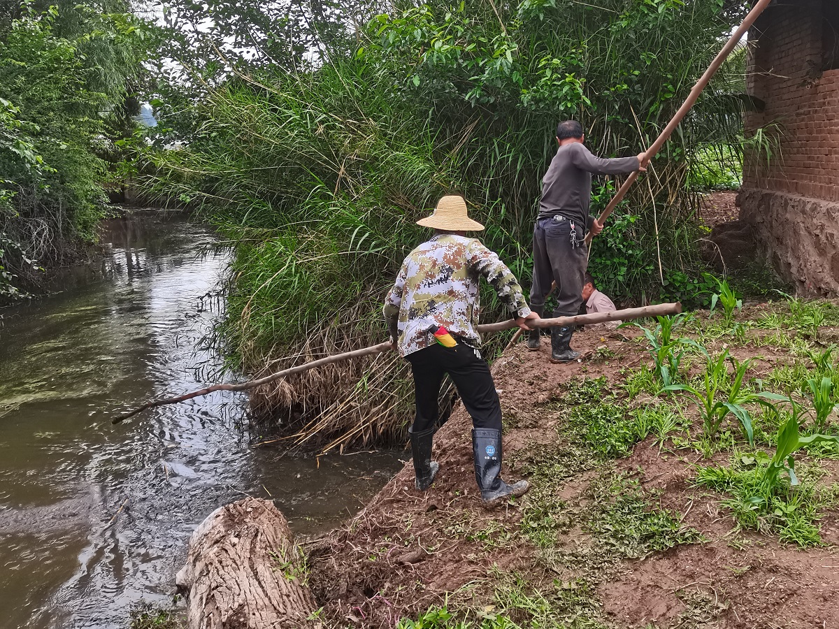 强化隐患排查,打好防汛“组合拳”。 坚持党建引领,召开社区和村组干部会议,会议研究决定实行“社区‘两委’包片、村干部包组、党员包户”的管理机制,成立由社区挂村领导、党员干部和网格员组成的专项排查工作组,对辖区内水库、塘坝、河道、高陡边坡、危旧房、低洼地、道路、地质灾害隐患点等进行全方位、多层次、拉网式排查,建立“问题、任务、责任”清单台账,督促整改落实到位。同时发动共驻共建单位志愿者、村组干部、党员群众开展“党建+河长制” 清河行动, 对龙川江上游河前小河进行集中清理,从源头上减少入河垃圾,清除堵塞河道隐患。组织人员清除大坝、堤身杂草,疏通涵洞、排水沟等,确保排水通畅,排除隐患。目前,共开展隐患排查20余次,发现隐患问题3个,已整改到位;清运河道垃圾6余车次、清理河道2.7公里;清除大坝、堤身杂草5处;疏通涵洞、排水沟7公里。