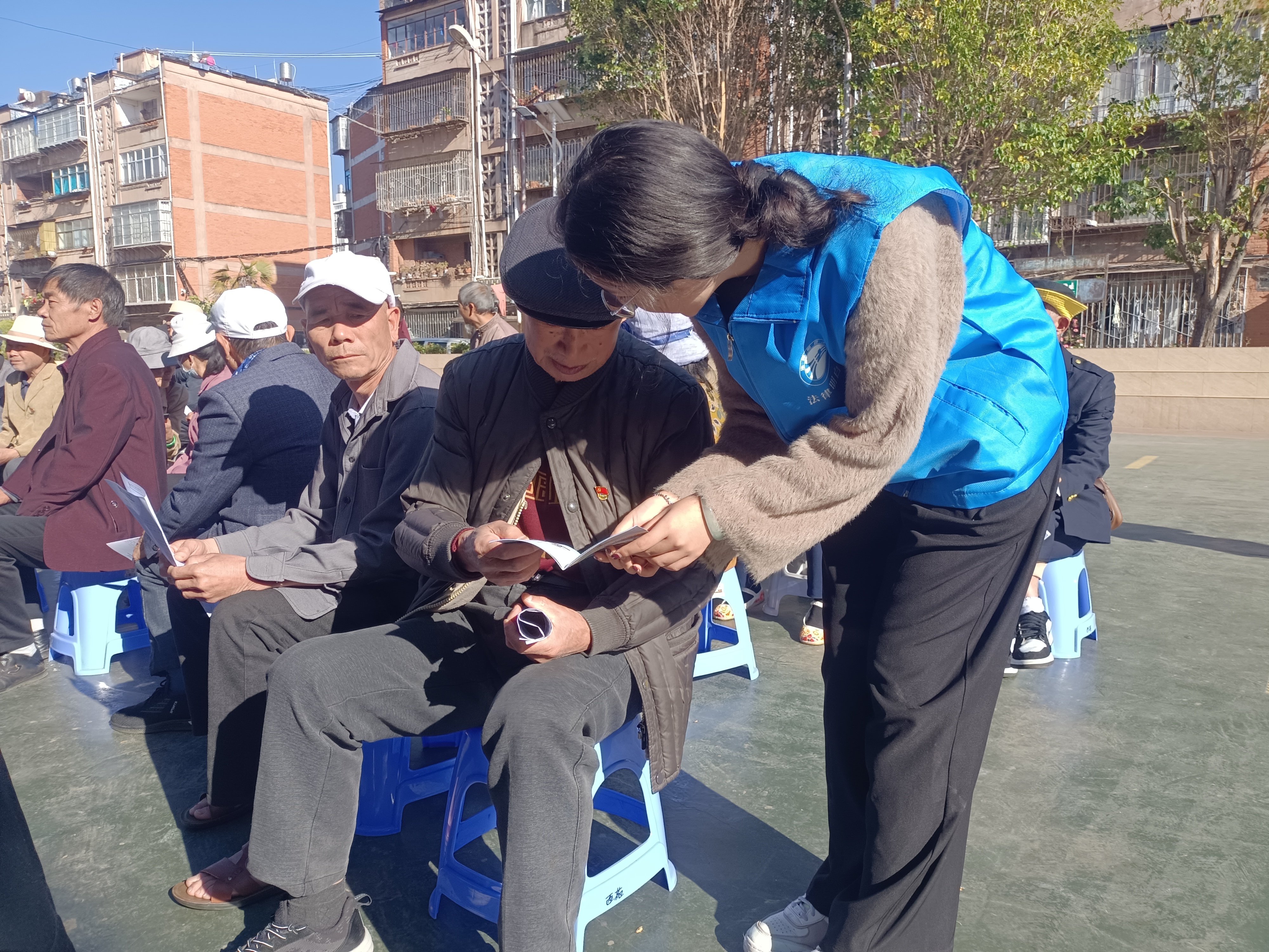 活动现场热闹非凡,社区群众十分踊跃并积极参与,既充盈着春日的“喜气”,亦有满满的“人气”!活动开始,社区工作人员首先向在场的群众分发了“全民反诈在行动”倡议书、安全告知书等宣传单。