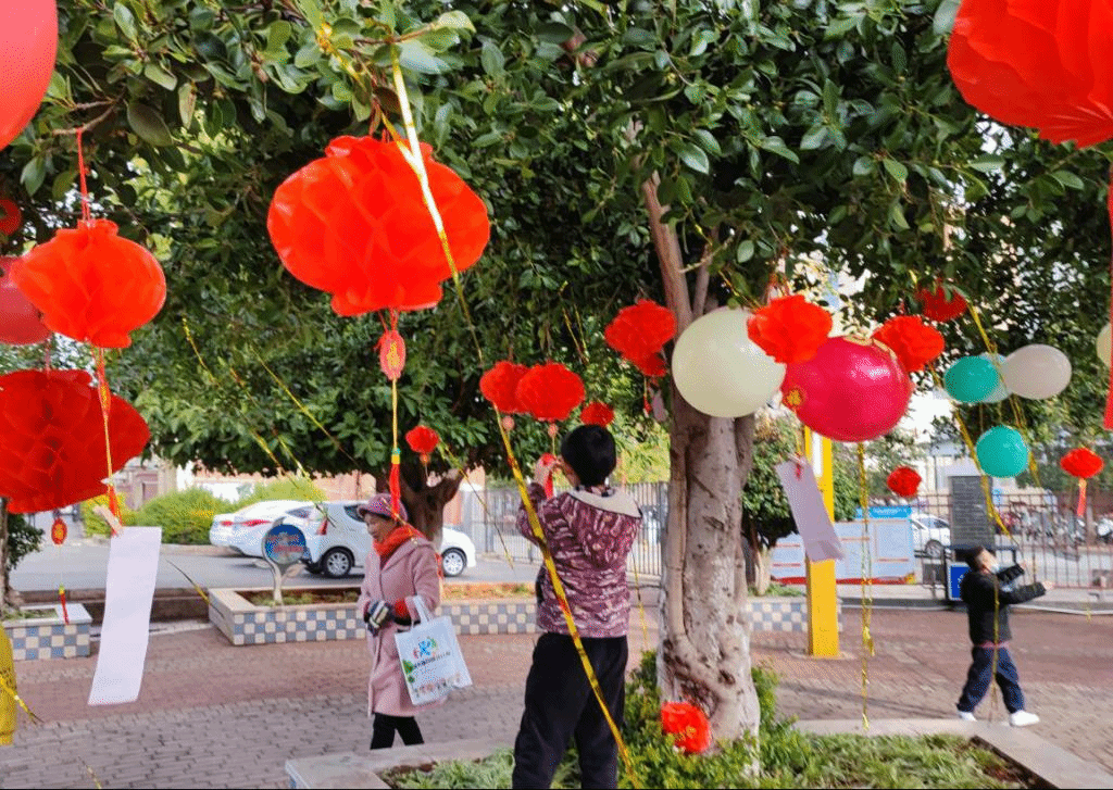 灯谜猜猜猜,趣味迎新春。红彤彤的灯笼挂在树上,一条条彩纸灯谜摇曳在树间,为让社区青少年儿童感受春节这一传统节日的独特魅力、传承传统节日文化,社区组织开展“欢欢喜喜过大年”活动,现场猜灯谜,给孩子们讲解春节习俗,孩子们热情高涨,争先恐后地看谜面、猜谜语,整个活动现场到处都充满了欢声笑语,洋溢着祥和喜庆的气氛。不仅让大家感受到传统节日的文化,也营造出社区文明、喜庆、和谐的氛围。