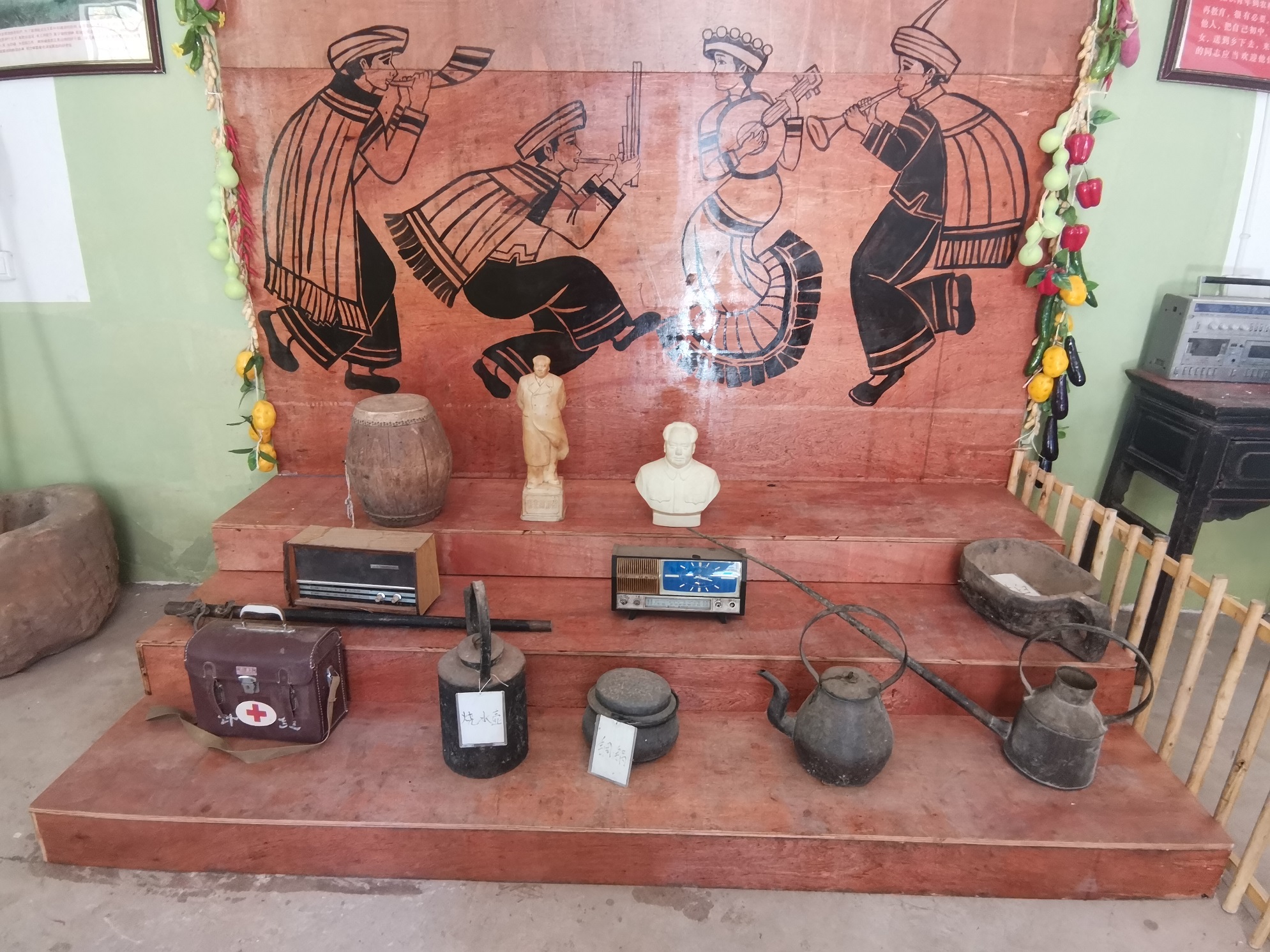走进富民下村,一间陈旧的茅草小屋映入眼帘,这间小屋“前世”是下村闲置的老会议室,“今生”是一间农耕文化陈列室。一间仅有48平方米的农耕陈列室摆满了下村19户居民捐赠的100多件老物件,成为了一间小小的“博物馆”。原先破旧的地面、墙面均已收整利落,干净宽敞。四周及地面上都摆放着早些时期农村生产、生活中经常使用到的农耕器具及生活用品等,这些器具都原汁原味的展现了当时劳动人民传统的农业耕作方式。每一样老物件均历经沧桑、弥足珍贵,象征着一代又一代人辛勤努力、艰苦奋斗的精神,珍藏着浓厚的农耕记忆和乡土情怀。
