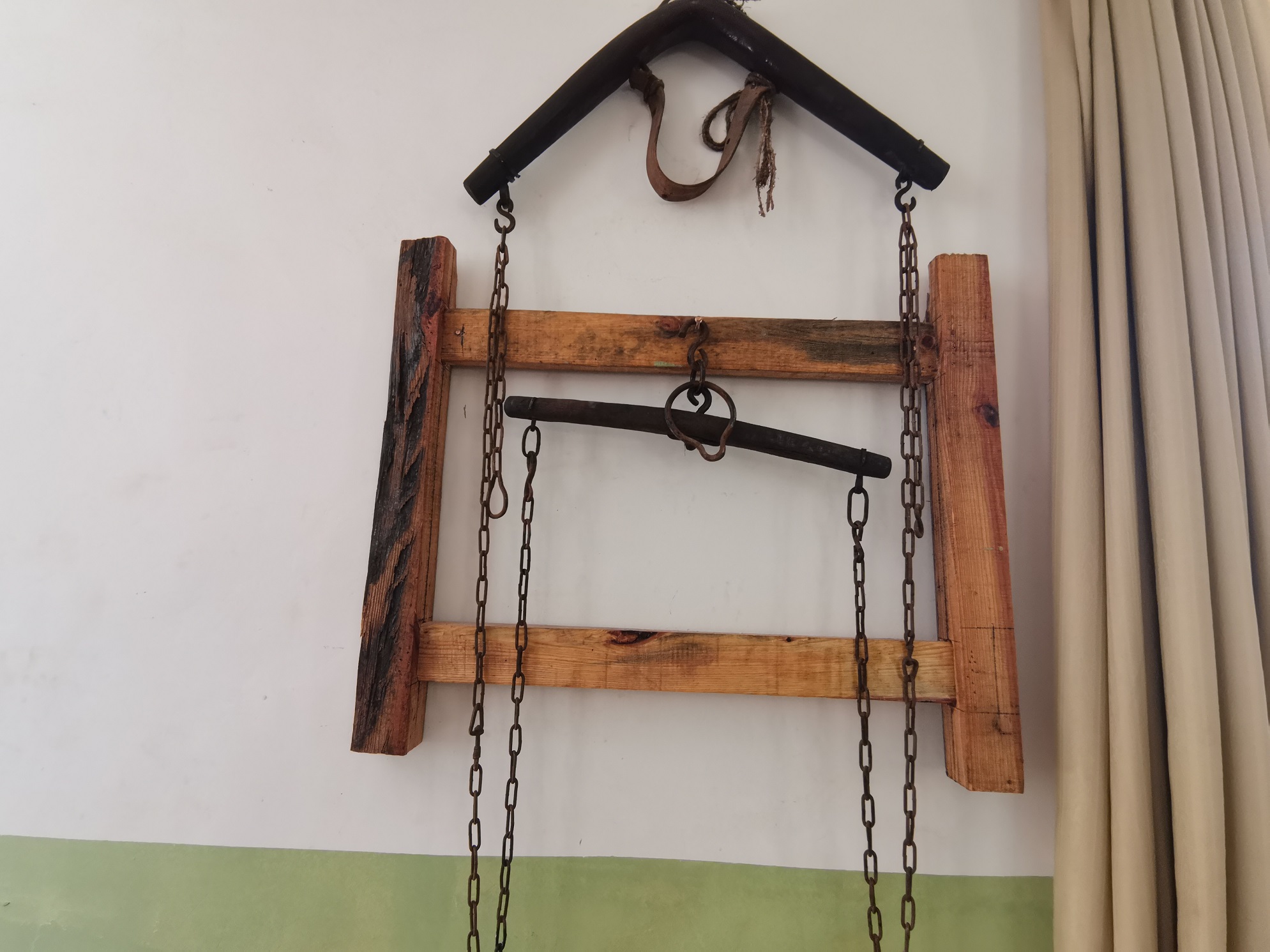 展厅内耕地用的犁子、耙,播种用的锄、耧,磨面用的磨盘,马鞍、牛担等,都是不同时代农民耕作的器具,每一件农耕器具,都蕴涵着一个乡愁故事,记录着那个年代的历史,也充分体现出先辈积累的发明创造和智慧结晶。农耕陈列室进门右手边设计了一面回忆墙,墙上挂满了黑白灰的老照片。发黄发旧的楚雄报,既满足了青年人的好奇,同时也唤起了中老年人对那段逝去岁月的缅怀。泛黄的工分本上记工员用蓝色钢笔工工整整记录着每个社员的劳动成果。