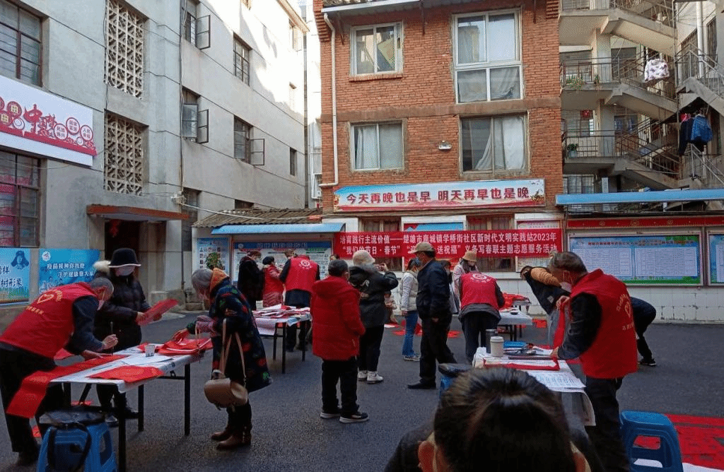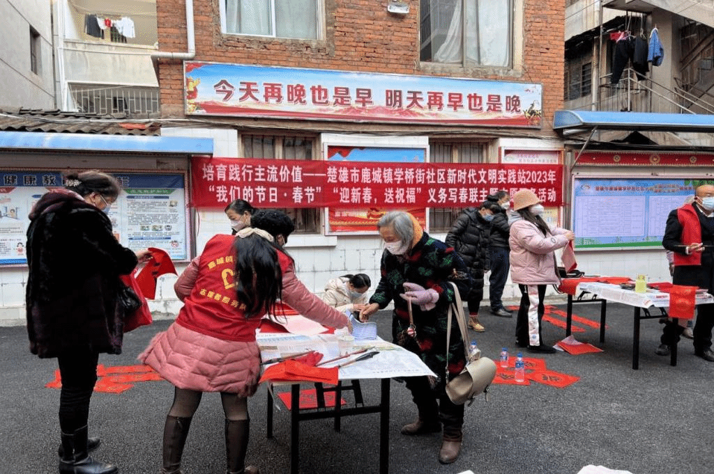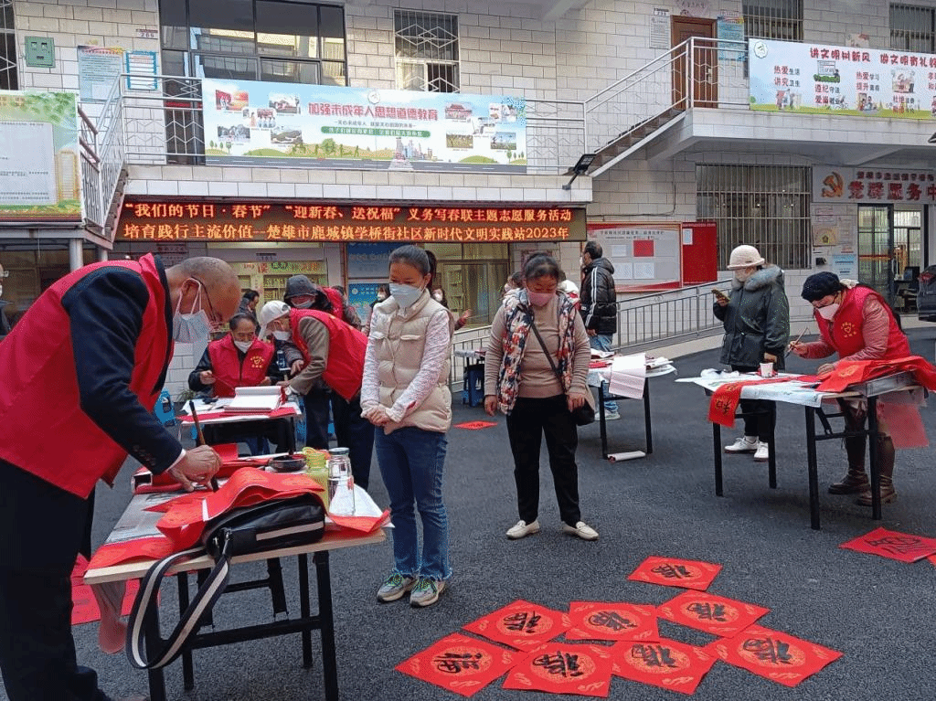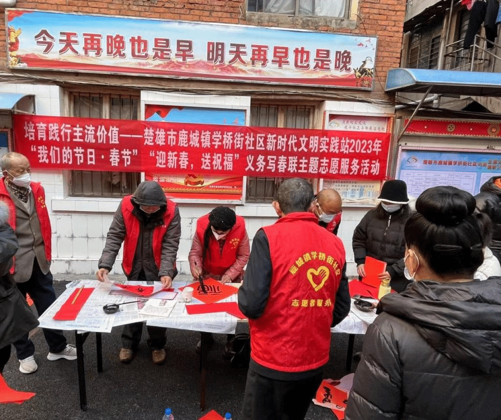 “千门万户曈曈日,总把新桃换旧符”,在新春佳节来临之际,1月5日,鹿城镇学桥街社区联合楚雄市书法协会、楚雄诗词楹联学会的书法老师在社区院内组织开展了“迎新春 送祝福”义务写春联主题志愿服务活动,为社区群众送上美好的新春祝福,营造欢乐祥和的节日氛围。
