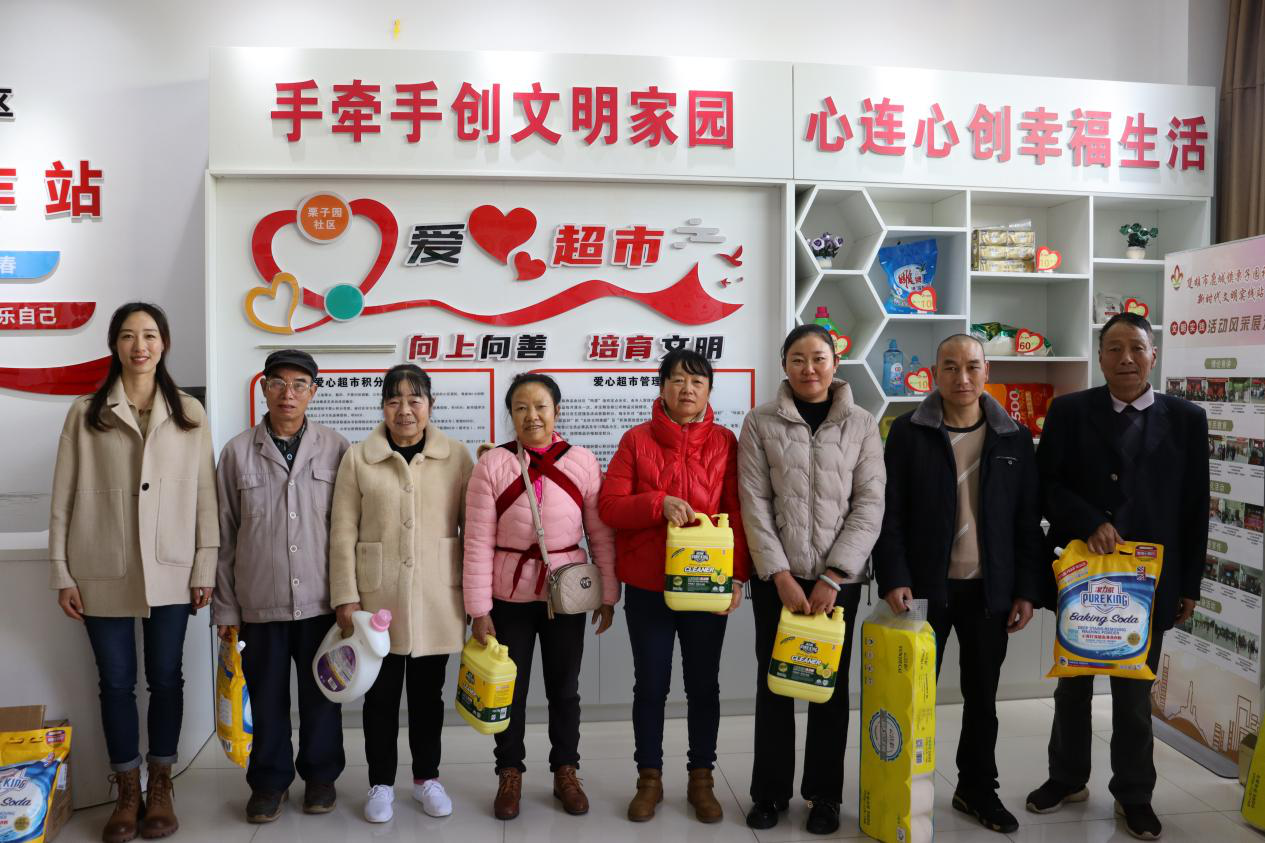 表扬会结束后,社区还进行了爱心积分兑换,社区工作人员为受到表扬的家庭送上兑换物品,兑换物品种类丰富,实用接地气,现场其乐融融,小积分兑出了新风尚。