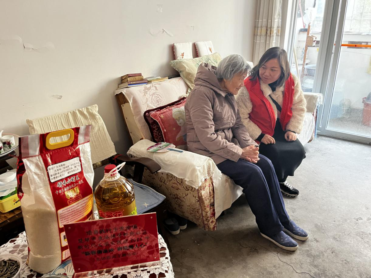 走访慰问情谊浓,帮扶牵挂暖人心。社区党总支对辖区困难群体和离职干部进行了走访慰问,为他们送去了大米、食用油等生活用品和慰问金。每到一户,社区工作人员都与他们拉家常、聊生活,详细询问他们的家庭生活、经济收入和身体健康状况以及生活中的困难问题等,并对近期征兵、医保等政策进行宣传,叮嘱大家冬季用气用电安全。与离职老干部交流中,认真向他们征求社区工作意见建议,希望他们保重身体,离岗不离心,积极参与社区建设,积极为社区发展建言献策,切实让他们感受到组织的关怀和温暖,增强了他们的归属感,增进了与社区的感情。