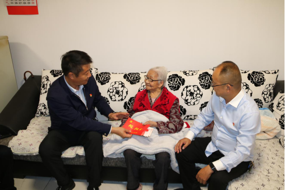 “重阳节了,我们来看望您老,祝您身体健康、福如东海!”慰问组来到94岁高龄老人董学琼家中看望慰问老人,仔细询问老人身体、生活状况,了解需求,为她送去节日的问候及党委、政府的关怀。93岁企业退休老党员杨秀珍拉着慰问组同志的手,激动地说道:“感谢党、感谢政府一直以来的关心,我生活的很好,这得益于我们伟大的中国共产党的领导”。此次慰问全镇共走访70岁以上老人600余人。