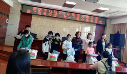 为大力弘扬中华民族扶危济困的传统美德和乐善好施、捐资助学的社会主义新风尚,推进党史学习教育走深走实,充分发挥妇联组织在关心关爱困境儿童工作中的重要作用。近日,楚雄市妇联联合昆明市呈贡区云加益社会工作服务中心在鹿城镇开展2021年困境儿童关爱暨“逐梦校园一帮一”爱心助学活动。