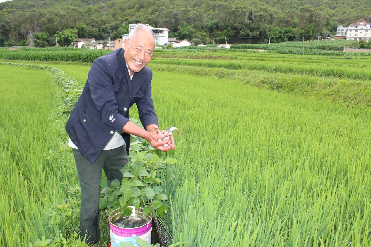 “我今年种了5亩田,领到了二十多斤鱼苗,到收稻谷的时候就可以实现稻鱼双丰收了”村民郭忠李高兴地说。