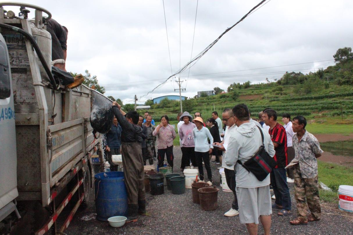 发苗现场人头攒动,村民们正拿着水桶领取免费的鱼苗。在工作人员的精心组织下,村民签字按手印领鱼,整个发放过程井然有序,村民们脸上洋溢着幸福的笑容。