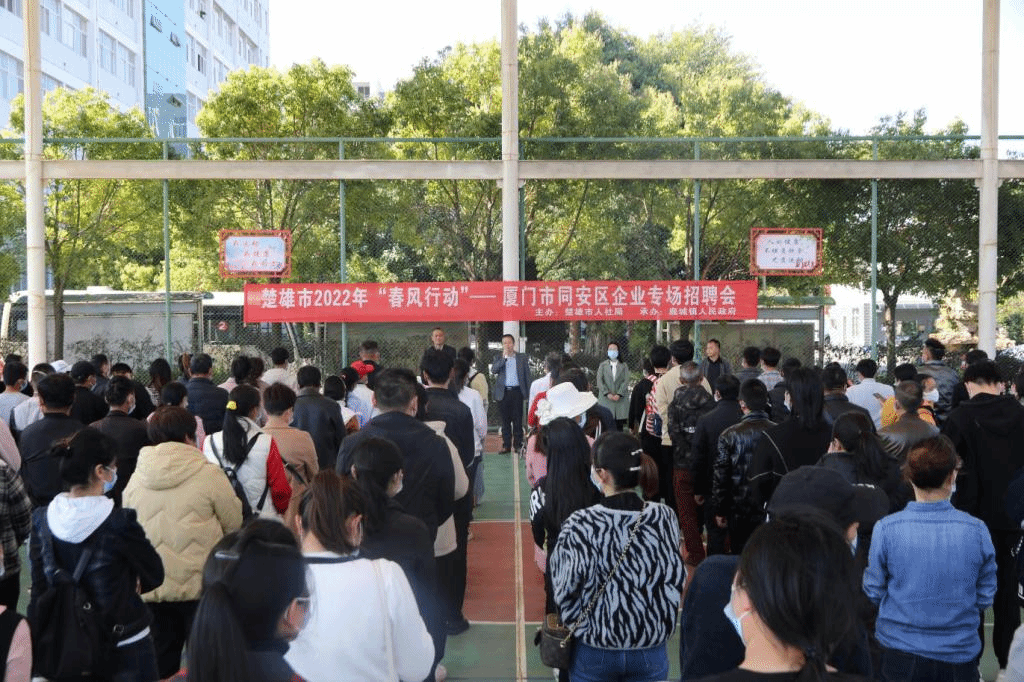 近日,楚雄市2022年“春风行动”——厦门市同安区企业专场招聘会在鹿城镇人民政府篮球场举行,此次招聘会由楚雄市人社局主办、鹿城镇人民政府承办。