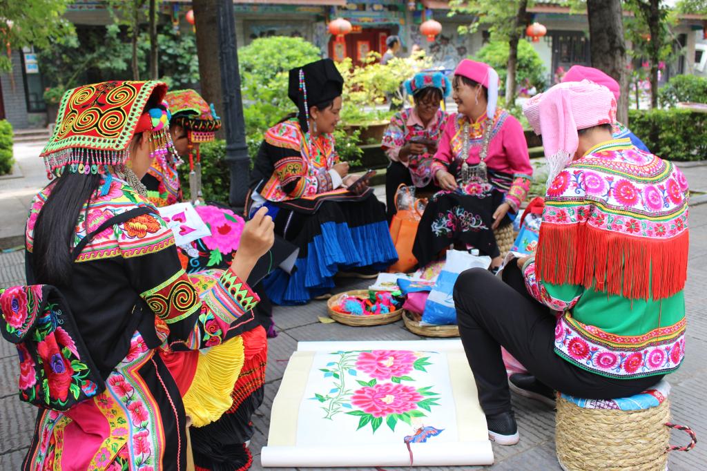 (彝人古镇社区组织彝绣动态展)