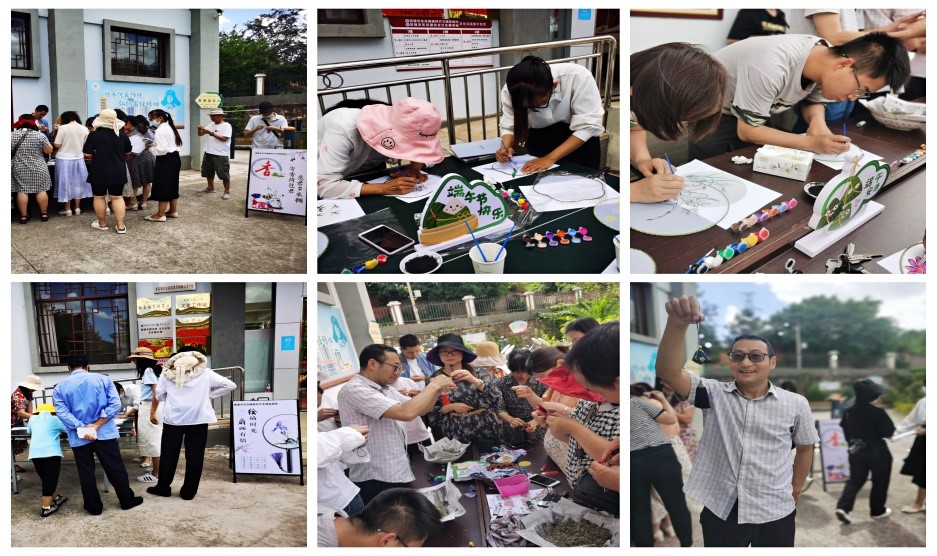 制香囊,画团扇,巧手传情。端午节也称“健康节”,每逢端午佳节,中国传统会插艾草、戴香囊来避瘟驱邪、祈求安康。在手工制作香包活动中,让干部职工通过小小的针线、布匹、艾叶、流苏等材料,一针一线亲手缝制出一个个清香四溢、驱虫防病的小香囊。端午时节,暑热渐生,团扇取凉,在创新绘制团扇活动中,大家各自选取喜欢的图案或者发挥自己的创意,在一把把空白的团扇扇面上,一笔一画描绘出对生活的美好憧憬。小小的香囊和团扇,承载了千百年来中国人对健康生活的追求,活动中大家相互教授缝制技巧,相互指导绘画色彩搭配,相互欣赏劳动成果,有说有笑,其乐融融,共同感受传统节日。
