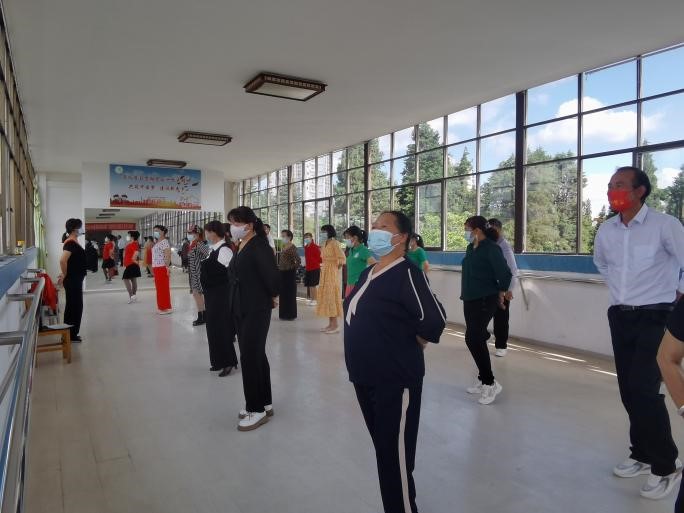 培训班在《戏曲韵律操》简洁轻快的音乐声中拉开序幕,专业老师在前排示范讲解,学员们有序列队在后面跟学,每位学员都认真听讲解,仔细看示范,努力做动作。