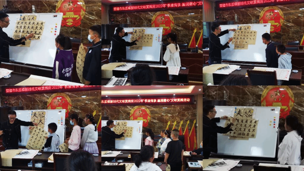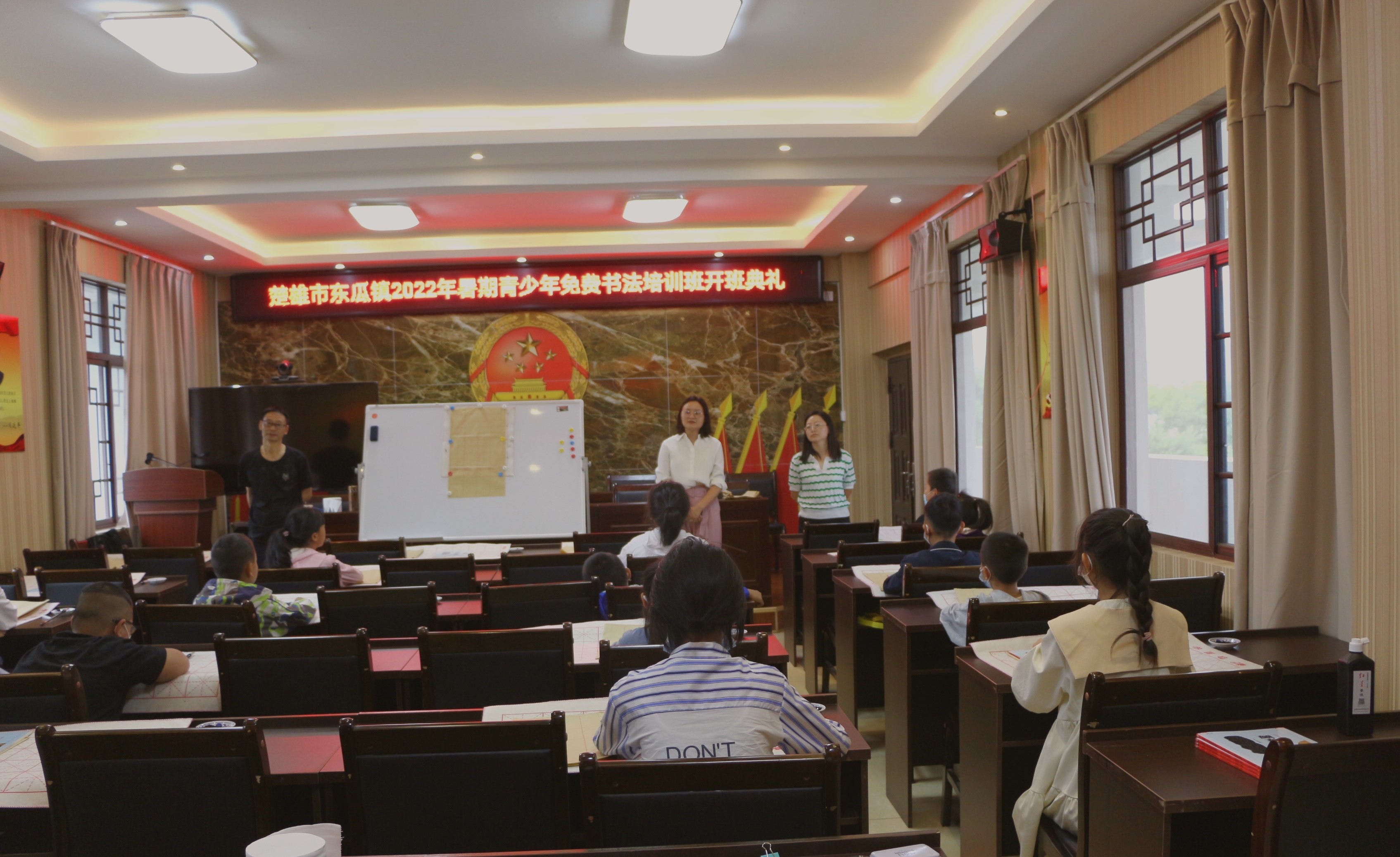 2022年8月2日,东瓜镇暑期青少年免费书法培训班正式开班,镇宣传委员陈晓红、授课老师毛家荣以及全体参训学员参加开班典礼。