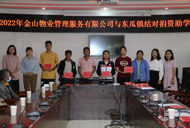 爱心助学,传递温暖,激励学子,筑梦未来。为帮助困难家庭子女圆梦大学,8月31日下午,东瓜镇与金山物业管理服务有限公司结对,开展了“金秋捐资助学 送爱心暖人心”新时代文明实践活动,为20名贫困学子送去助学金9.1万元,帮助解决困难家庭的“燃眉之急”。