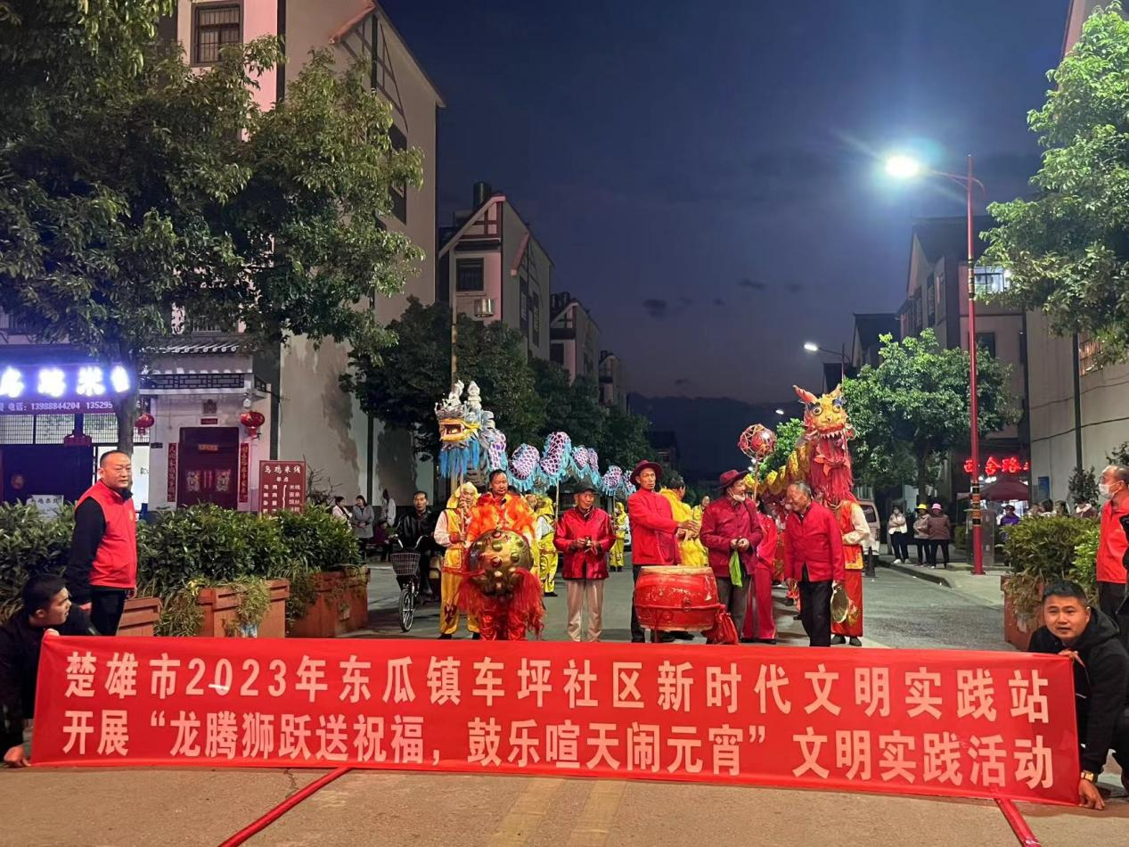 2月5日下午,东瓜镇车坪社区新时代文明实践所开展“龙腾狮跃送祝福,鼓乐喧天闹元宵”文明实践活动。来自车坪社区的龙狮队为辖区居民带来了一场集视觉与听觉于一体的表演盛宴。伴随着激昂的锣鼓声响起,耀眼炫彩的长龙、威武的狮子在表演者手中欢腾起舞,时而柔和缓慢,时而热烈强劲,表演队员们配合默契、队形整齐划一、动作矫捷轻快,节目现场异彩纷呈,叫好欢声、呼声连绵不绝,前来观看的居民纷纷拿出手机拍照、录像,开心的记录着美好一刻。
