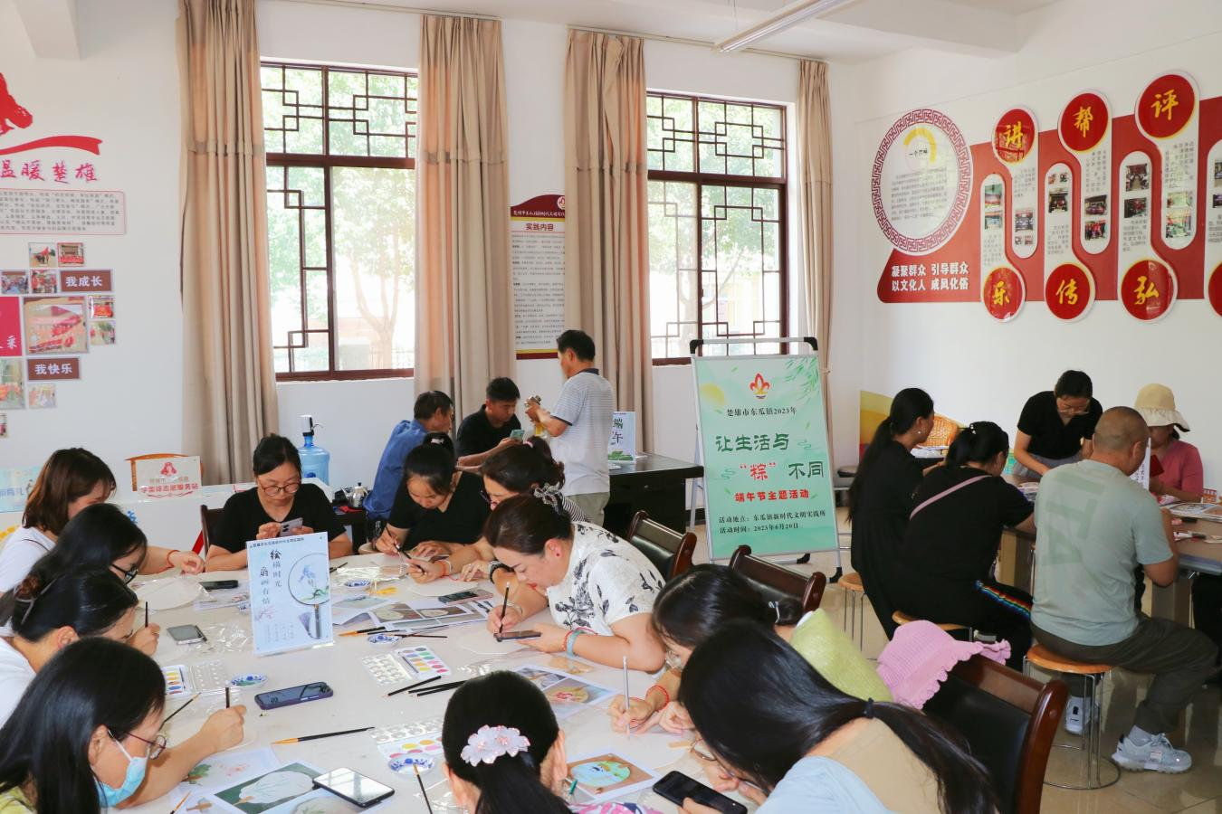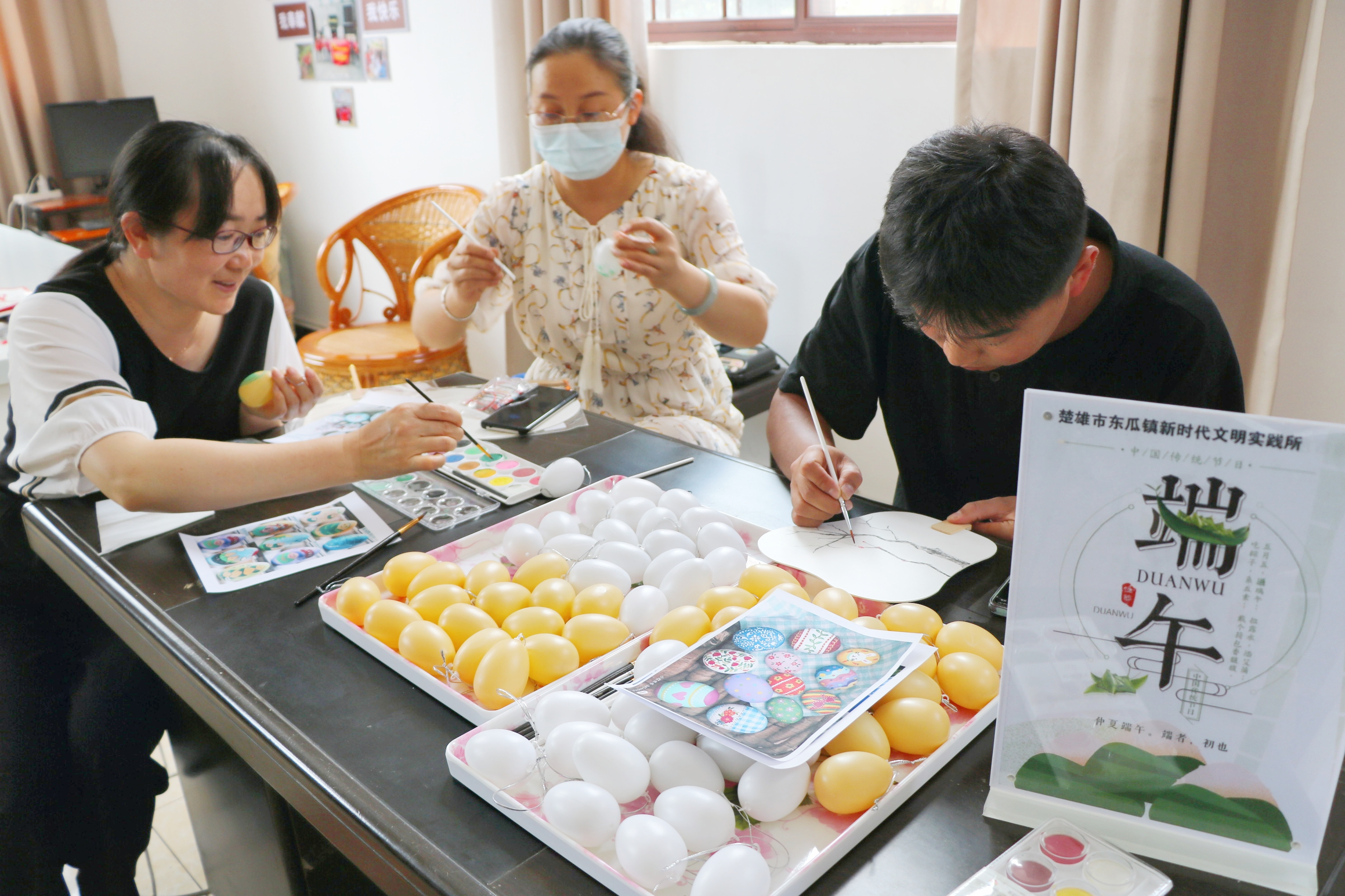 端午临中夏,时清日复长。为营造良好的端午节文化氛围,弘扬中华优秀传统文化,丰富职工们的文化生活,活跃节日气氛,6月20日,东瓜镇综合文化站联合东瓜社区开展了“让生活与‘粽’不同”端午节主题活动,活动分为四个区:手绘团扇区、手工制作香包区、绘画彩蛋区和射五毒游戏区。