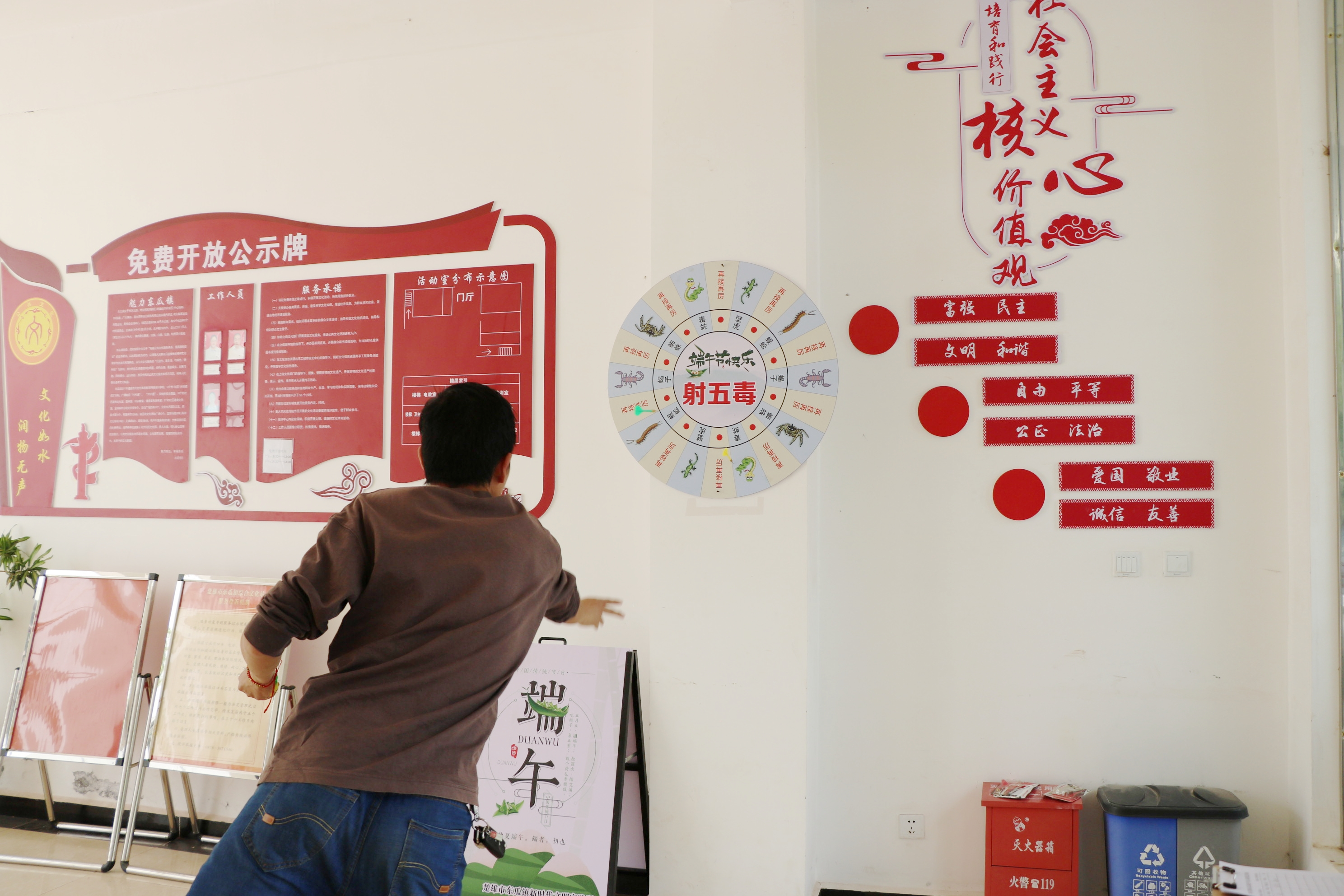射五毒,画彩蛋,其乐融融。在射五毒区,小小的板子上画着“蝎子、蜘蛛、壁虎、蜈蚣、蛇”五毒图案,大家都无法抵挡“来一把”的魅力,平气凝神、稳步瞄准,射中五毒即为挑战成功获得小礼品一份。有的干部职工一发即中,有的干部职工遇挫越勇。简单的游戏让大家对传统民俗又有了新的认识,感受到传统文化的乐趣与魅力。小小的鸡蛋,多彩的想象,在绘彩蛋区,干部职工大胆运用自己喜欢的颜色进行绘画,尽情展示自己对色彩的理解,搭配喜欢的图案,表达对端午节的喜爱。