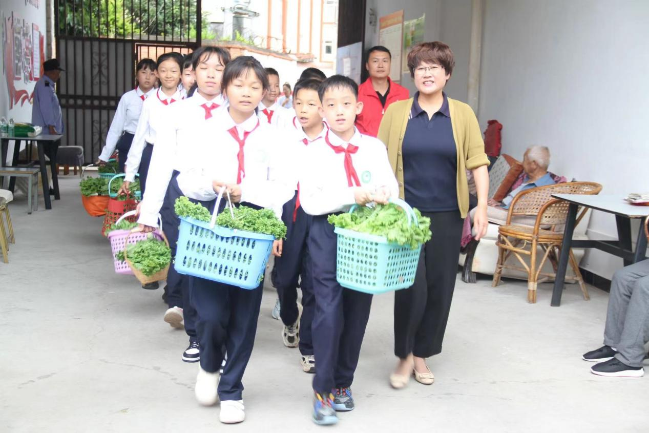 “蔬”送爱心,传递温暖。开发区永安小学“永安澡园”又迎来了丰收季,在老师的带领下,学生们将采收好的蔬菜清洗干净,用篮子一筐一筐的装好,迈着整齐有爱的步伐来到东瓜镇敬老院,亲手将这些承载着爱与祝福的蔬果送到老人们手中,为老人们送上暖暖的关心和深深的敬意。