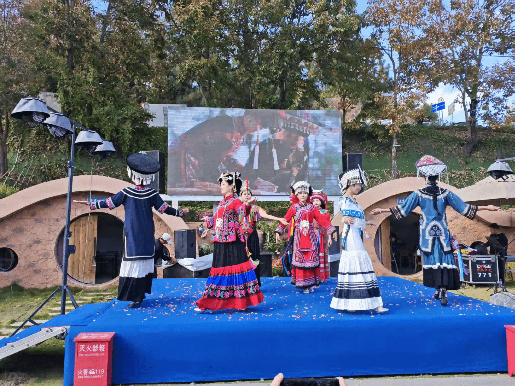 民俗体验与文艺表演轮番登场,将活动氛围一次次推向高潮。文艺演出在热情奔放的彝族开场舞中拉开序幕,灵动舞步搭配鲜艳服饰,瞬间点燃全场热情。婉转悠扬的女声独唱,唱出对美好生活的真挚赞颂;清雅婉转的古筝表演,让传统民乐与民族风情碰撞出别样火花;彝族服装走秀环节,模特身着刺绣精美、色彩绚丽的彝族盛装款款而行,将彝族服饰的独特美学展现得淋漓尽致;汉服走秀则带来跨越古今的文化对话,让观众尽赏中华传统服饰的典雅韵味。此外,现场设置的彝族文化互动游戏,吸引游客踊跃参与,在趣味比拼中加深对彝族文化的认知与喜爱。夜幕降临,熊熊篝火燃起,篝火晚会正式开启,大家手拉手围成圆圈,踏着欢快节拍跳起左脚舞,歌声与笑声在夜空中久久回荡。活动尾声,绚烂焰火划破夜空,五彩斑斓的光影照亮朱洗冲的夜色,也映照着居民和游客们幸福洋溢的脸庞。