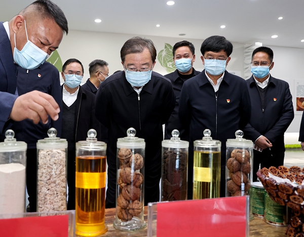 在云南摩尔农庄生物科技开发有限公司,王宁强调,云南是核桃种植大省,要制定核桃产业发展规划,大力发展精深加工,把核桃产业做大做强,成为惠农增收的重要产业。
