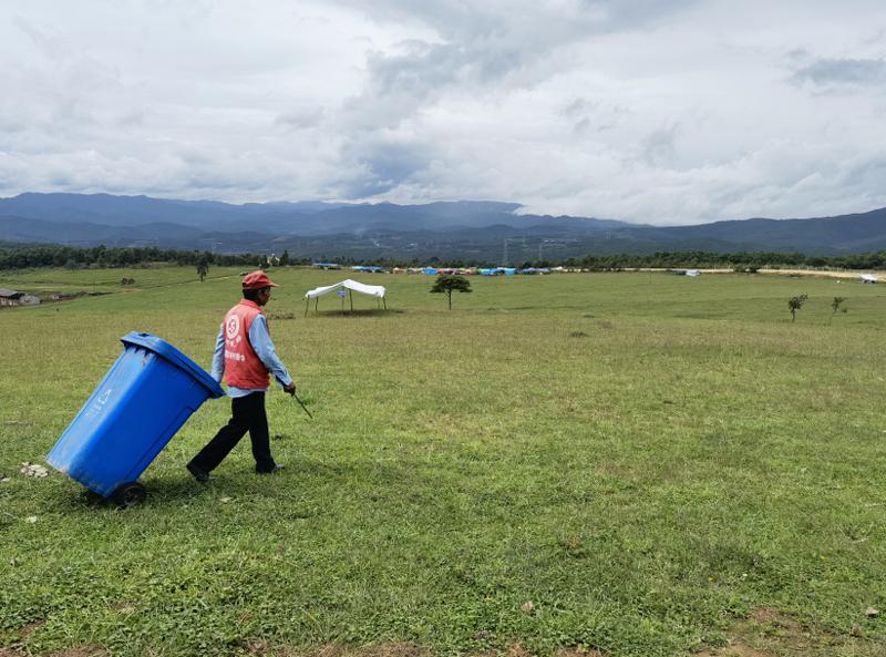 绿油油的毛菇山草场上,“小红马甲”的身影吸引了记者的注意。今年来,为解决毛菇山垃圾遍地、环境脏乱差的问题,村委会聘请了6名保洁员,每天轮流对毛菇山进行巡检,还派出1名人员对毛菇山进行综合管护,周末则增派人手加大保洁力度。