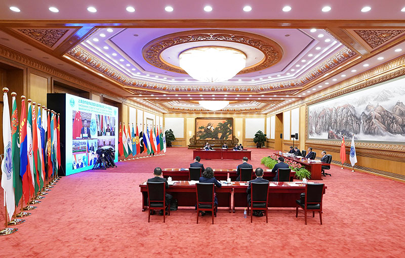 9月17日,国家主席习近平在北京以视频方式出席上海合作组织成员国元首理事会第二十一次会议并发表重要讲话。新华社记者 黄敬文 摄
