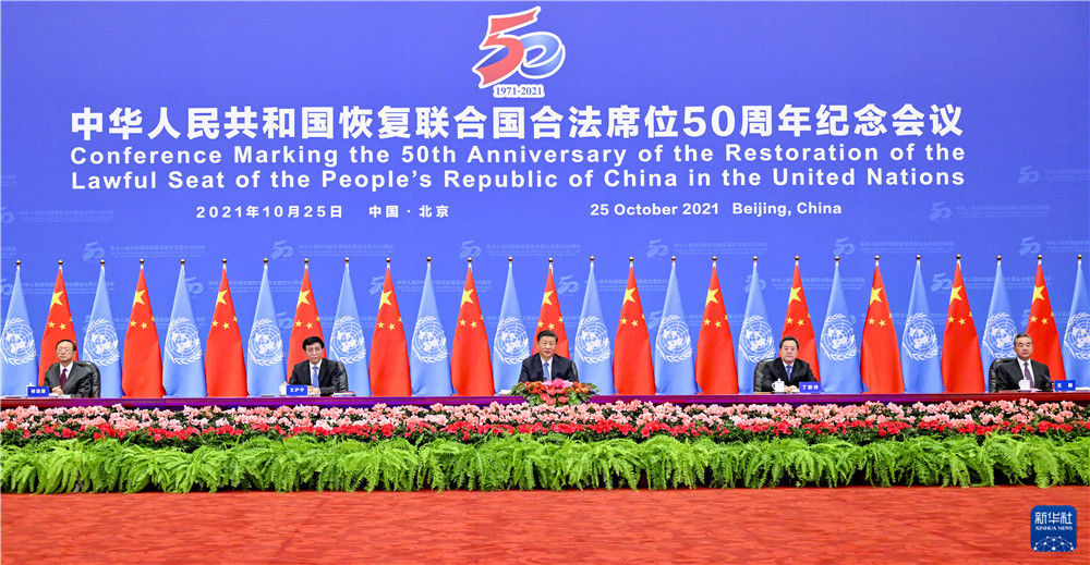 习近平强调,新中国恢复在联合国合法席位以来的50年,是中国和平发展、造福人类的50年。