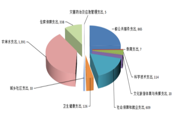 8.农林水(类)支出1,390.98万元,占一般公共预算财政拨款总支出的39.65%。主要用于农林水部门机构运转和苍岭镇农业补偿、森林防火、水利建设、扶贫、农村建设等支出,其中:工资福利支出308.10万元;商品及服务支出113.67万元;对个人和家庭的补助支出619.57万元;资本性支出349.65万元;