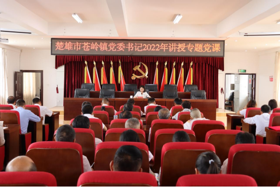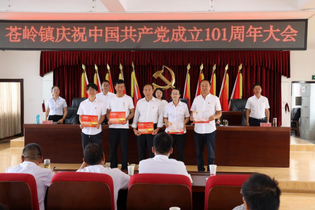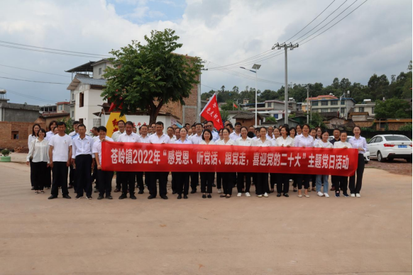 7月1日,苍岭镇开展庆祝建党101周年暨“感党恩、听党话、跟党走,喜迎党的二十大”主题党日活动。镇党政班子成员、镇属机关事业单位党支部全体党员,各村党总支书记、副书记、驻村第一书记,受表扬的优秀共产党员、党务工作者,共计90余人参加。