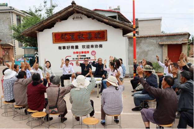 二、政协搭台,通过“小协商”解决民生难点问题。农村人居环境推不动怎么办?为此,苍岭政协委员联络处主动想办法,采取典型引路法,以黄草村委会红光队村小组农村人居环境整治为切入点,深入调研,认真思考,积极探索,在群众日常聚集的村间小广场内建立“邻里协商议事院”,通过认真准备,完善协商程序,由政协委员联络处牵头,邀请群众代表、人大代表、党员代表、少数民族代表和政府相关部门等30人参与协商会议。通过一次次协商,让红光队这个昔日脏乱差,人口多,村庄密集的村小组成为了美丽村庄示范村,让123户468名群众凝聚起来,从村民看着干部做,开口就要误工费等现象,转变为群众自觉投工投劳,主动捐资捐物,齐心协力共同建设美丽村庄的良性转变。